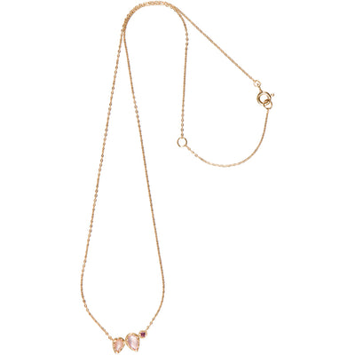 Delicate rose quartz, garnet, peach moonstone textured 18K vermeil necklace (18”).
