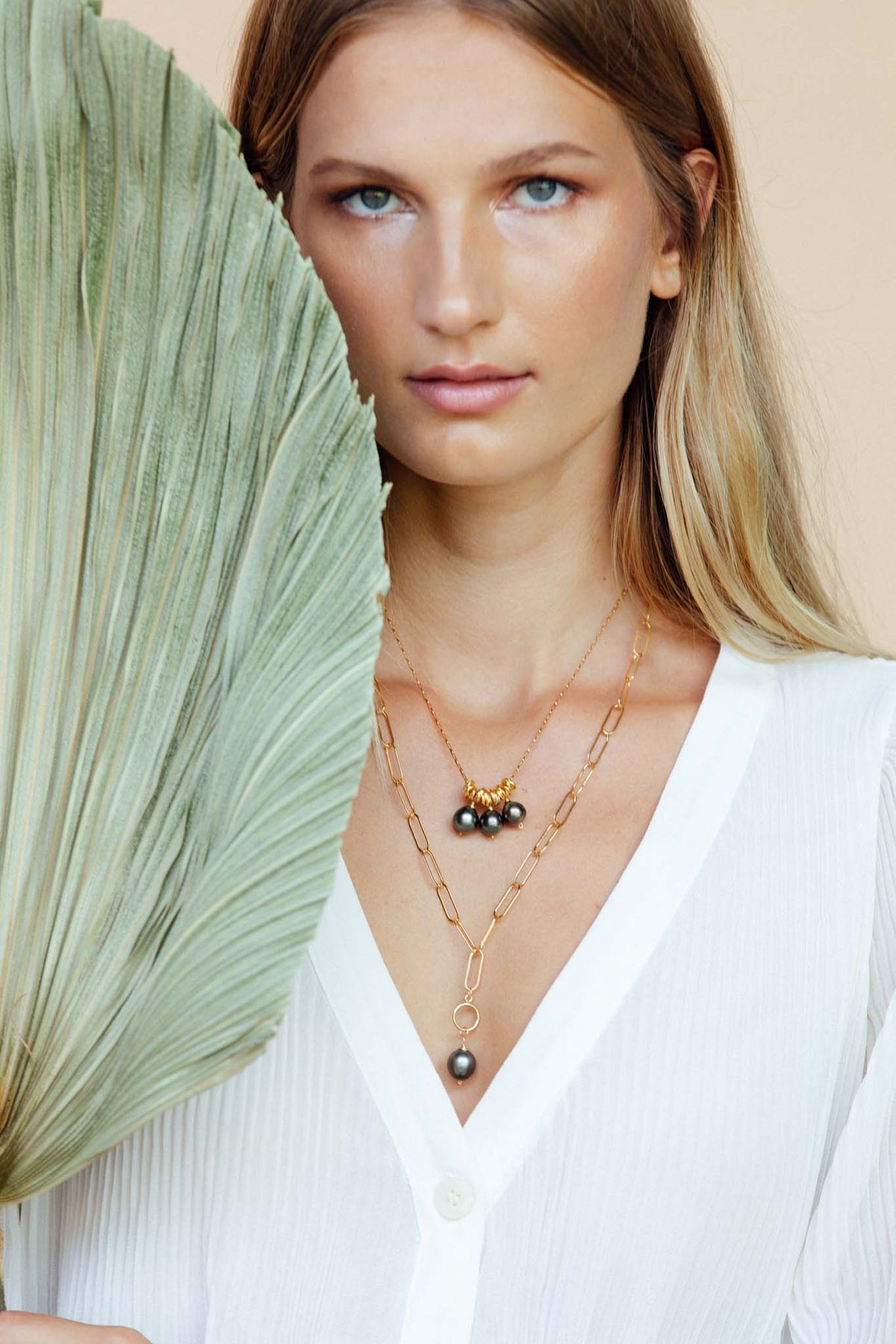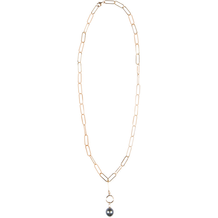Long Tahitian Pearl on 14K gold fill paper chain necklace. Perfect for layering